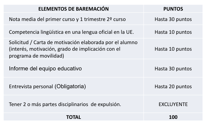 Después de las charlas informativas que tuvieron lugar el pasado 16 de octubre en el IES, adjuntamos el baremo de selección de los distintos proyectos del centro, para su consulta.